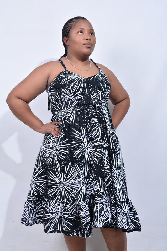 T8179 Traditional African Kente Fabric Black & White Dress