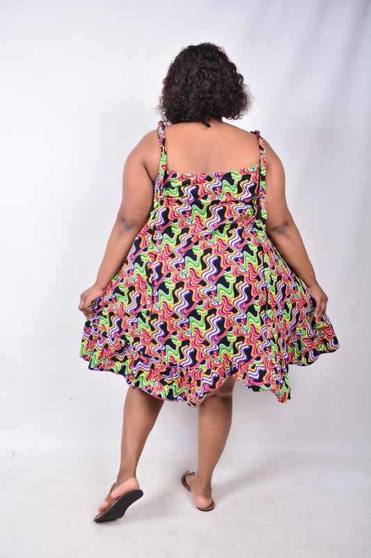 T8232 Traditional African Kente Fabric Grey, Yellow, Green, Red & Black Dress