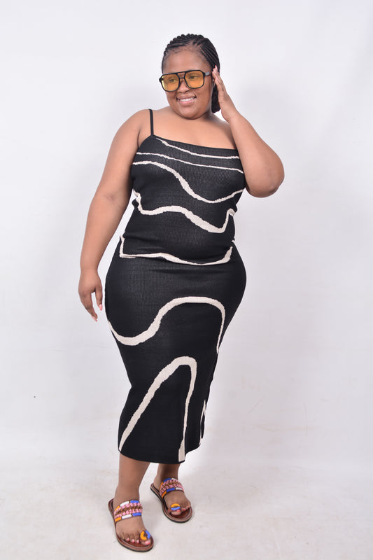 T8249 Ladies Black & Beige Woollen Dress