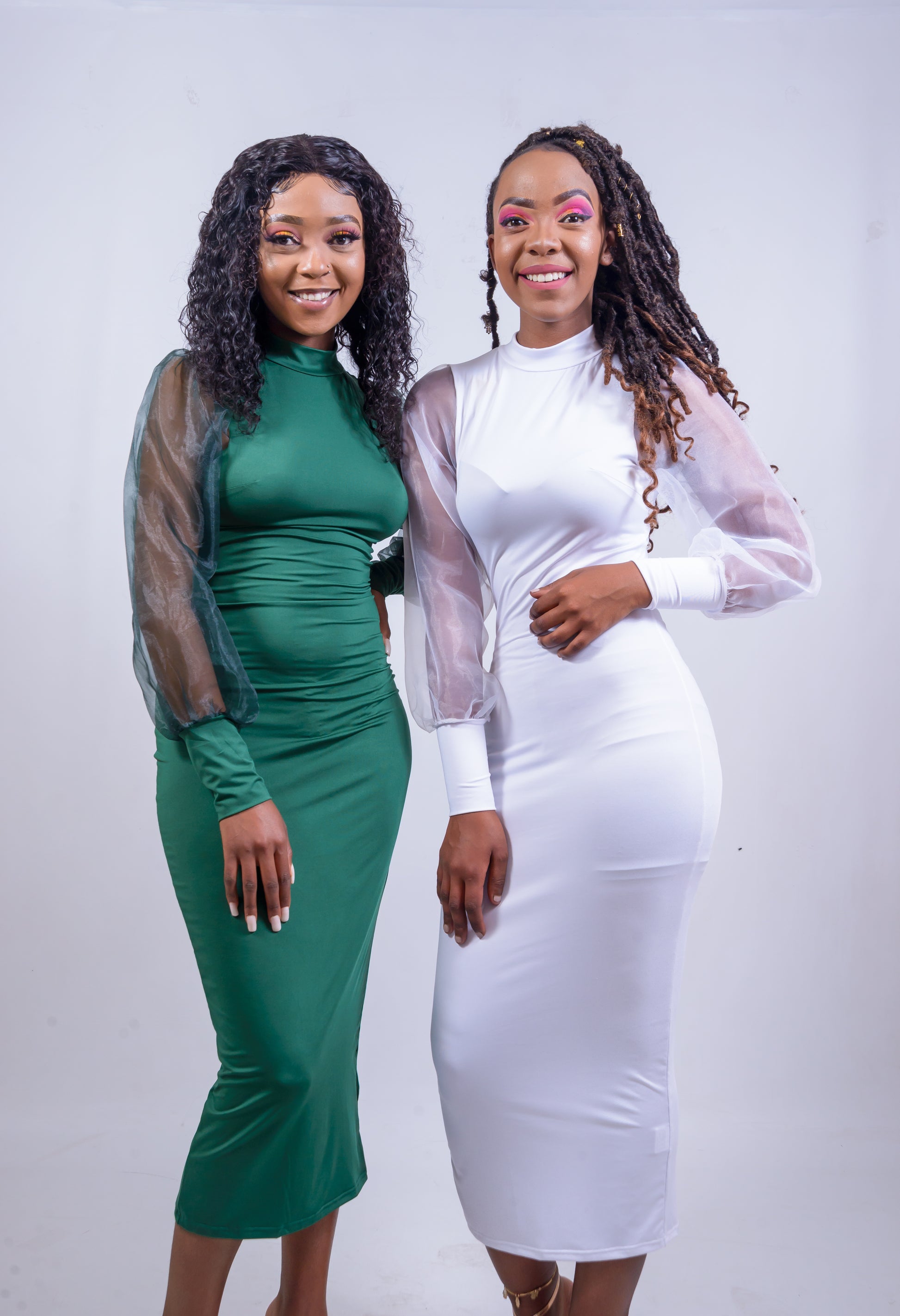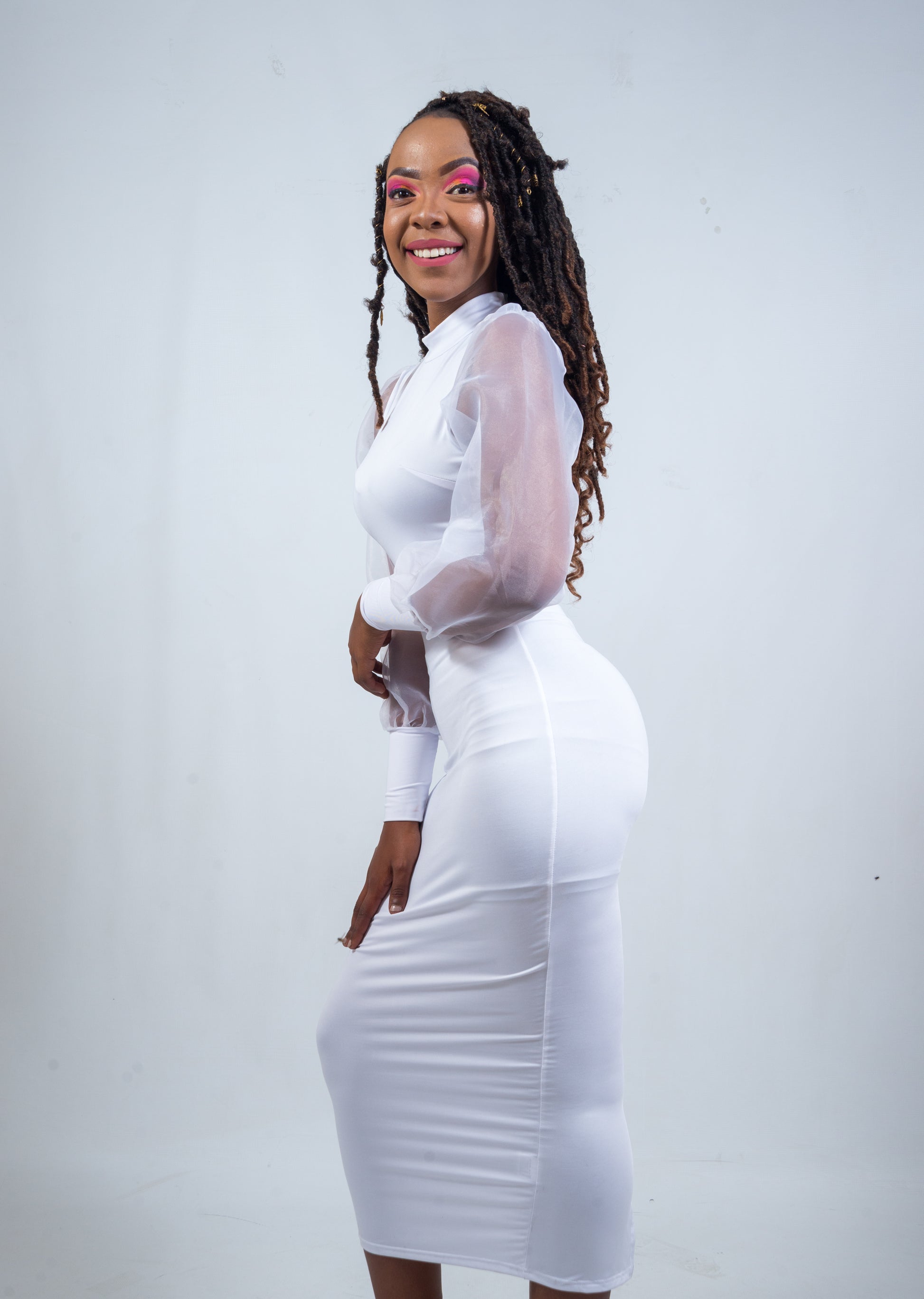 High Neck Bodycon Dress, Organza Puff Sleeves