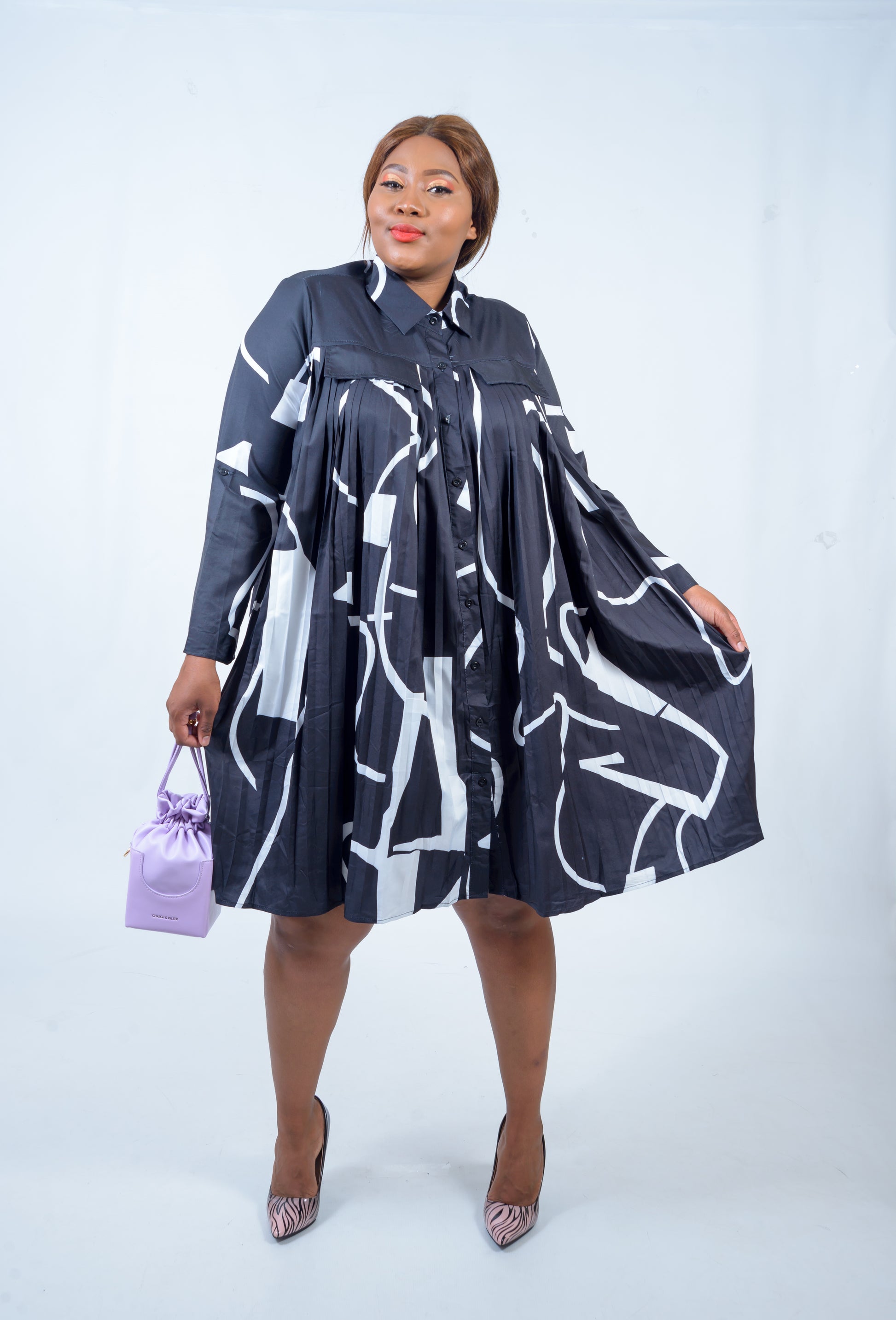 Front pleated shirt dress with art lines. Offered only in this colour. Long sleeves.