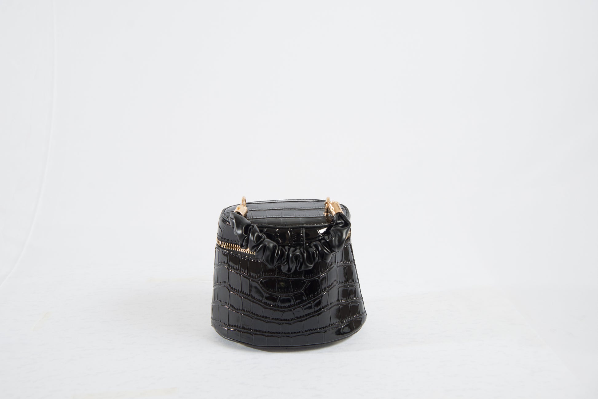 Crocodile patent mini bag. It includes a long strap which allows to carry as a sling bag.
