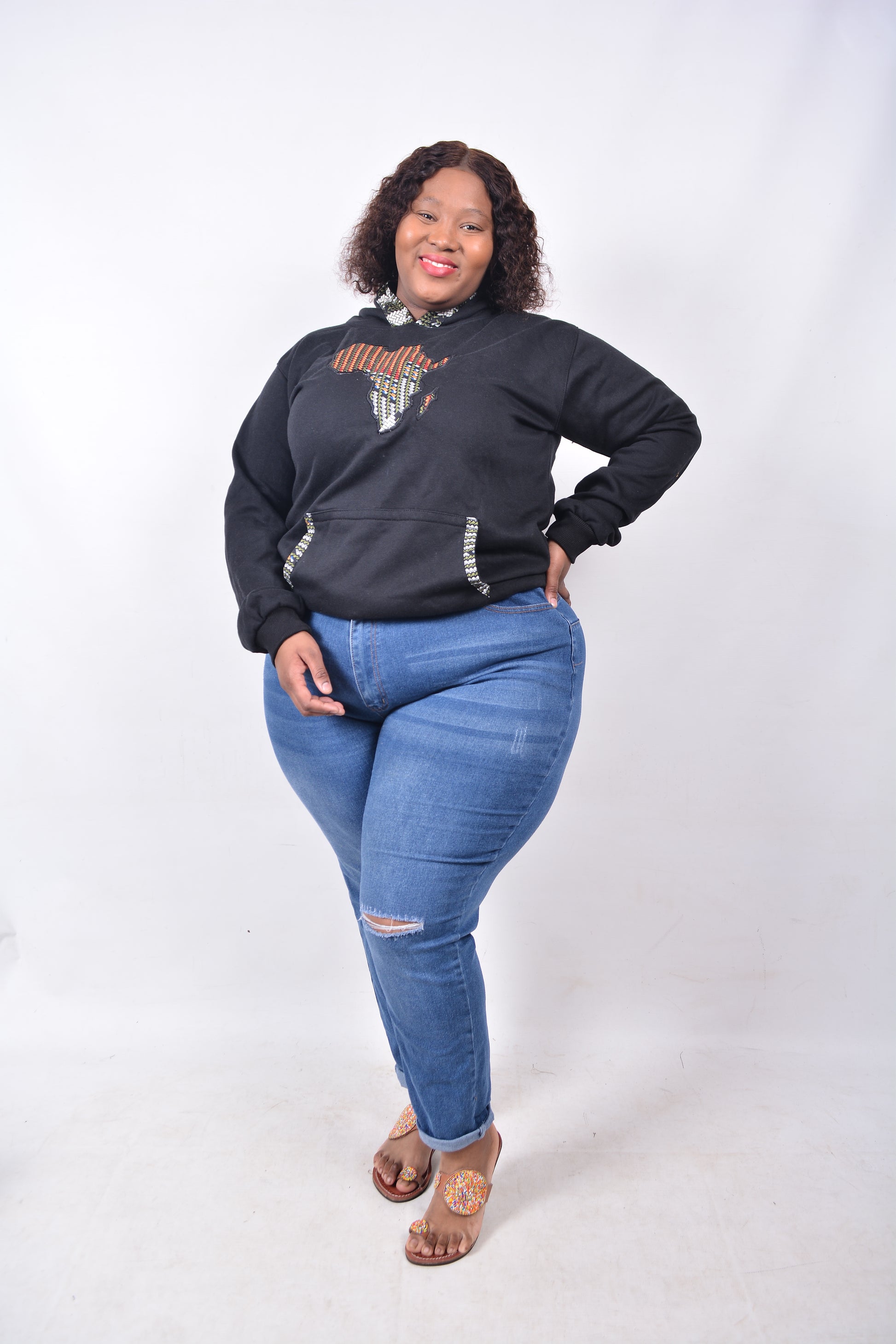 T8244 Traditional African Black Jacket with Black, Orange, Maroon, Blue & White Africa Map