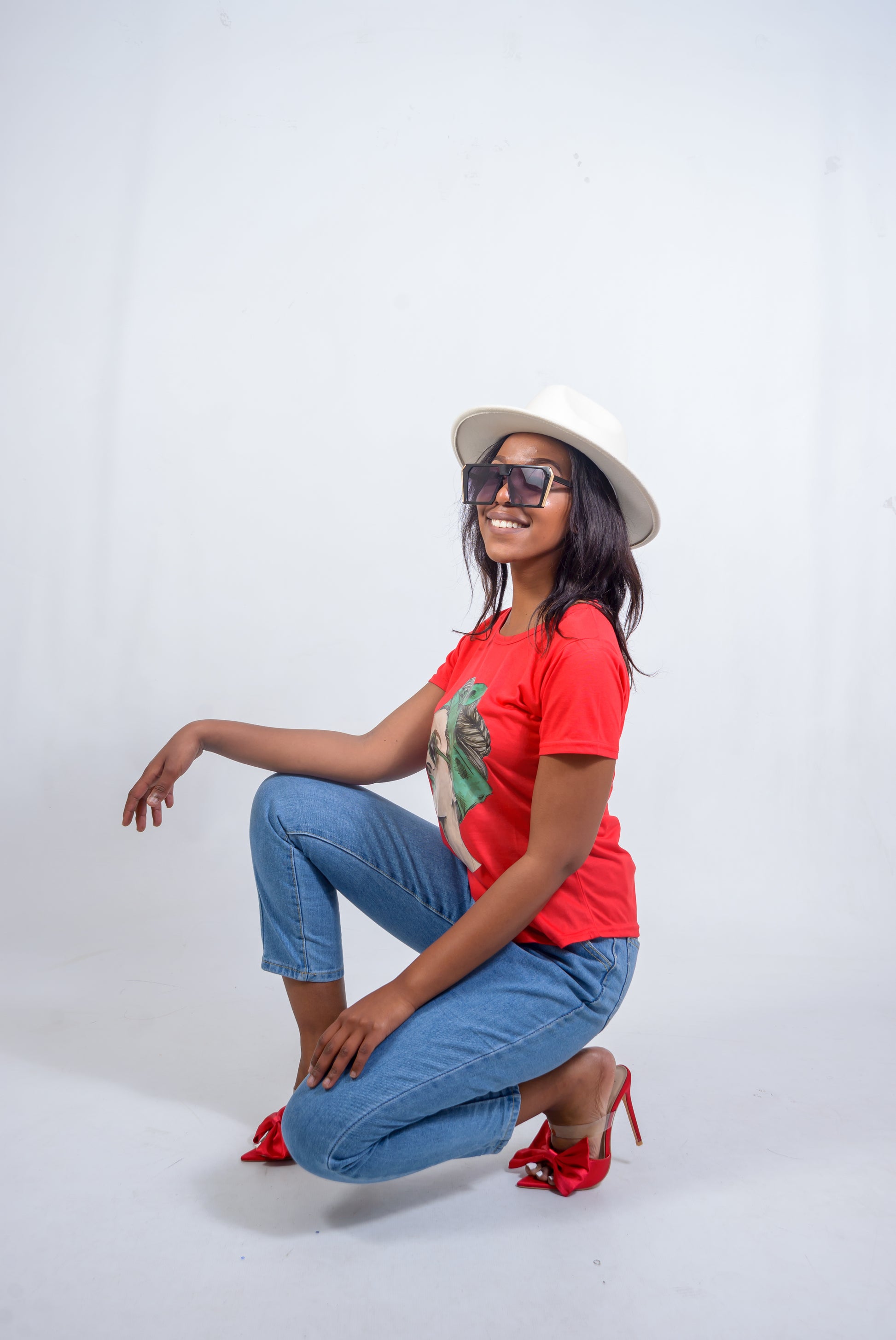 Boyfriend Jeans with tapered legs to minimise volume at the ankles. Only comes in this colour. It has pleats at the waist to flatter your curves.
