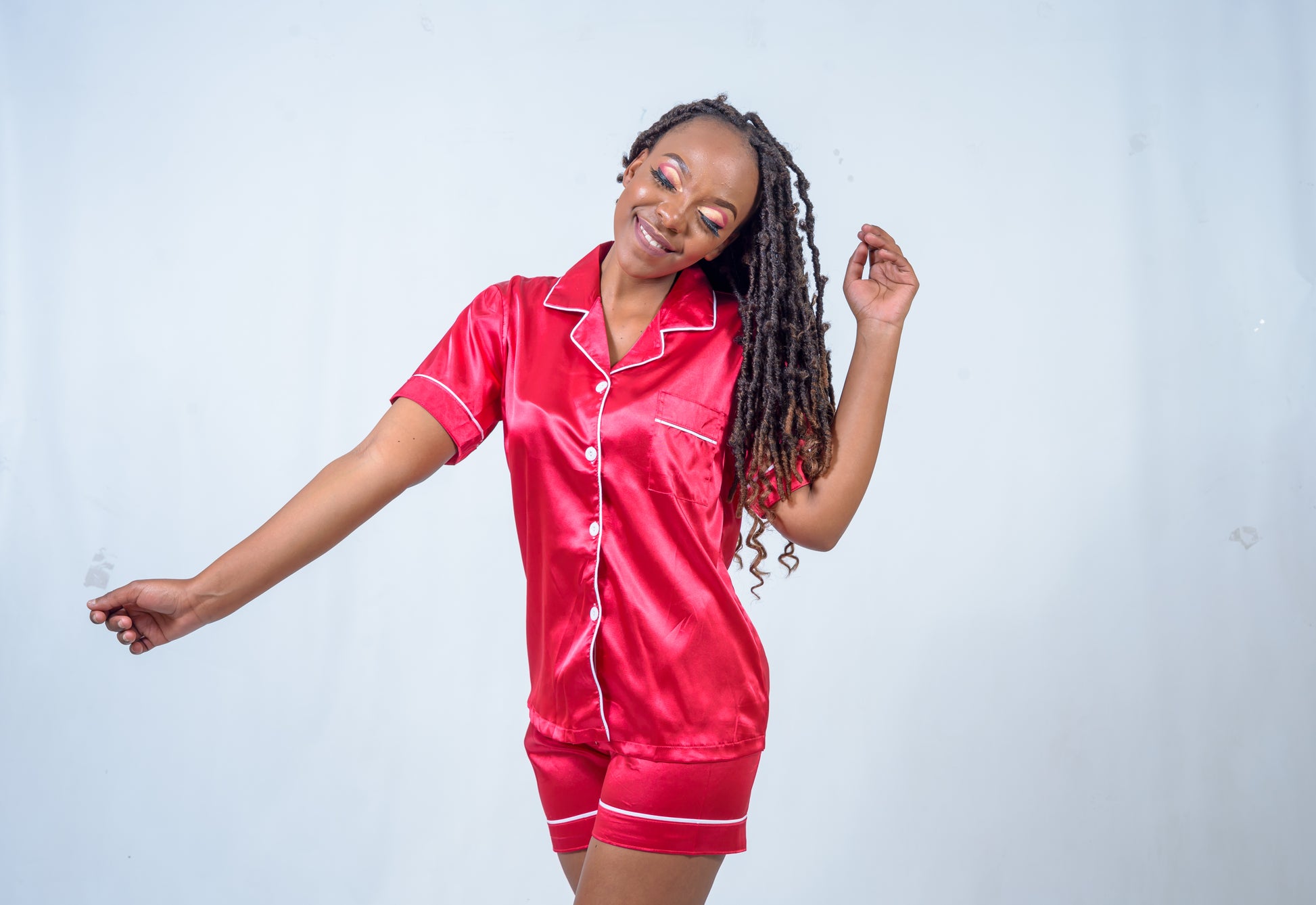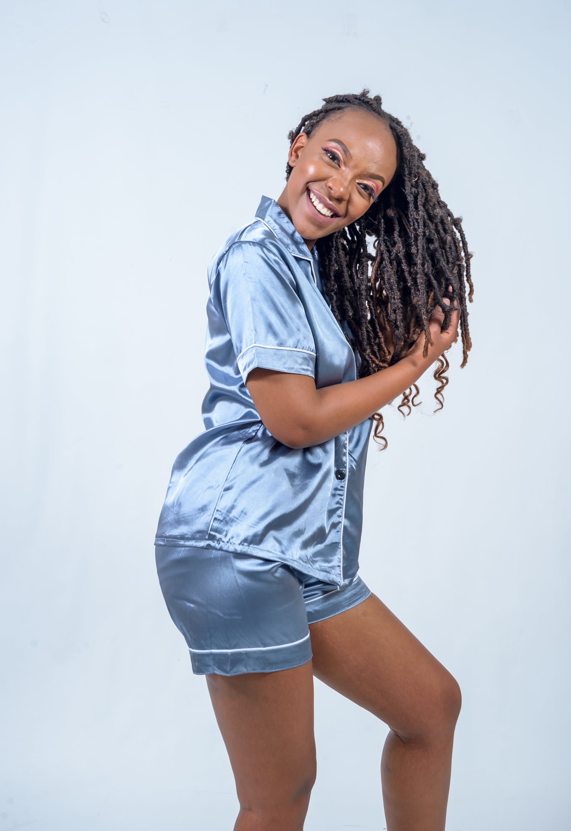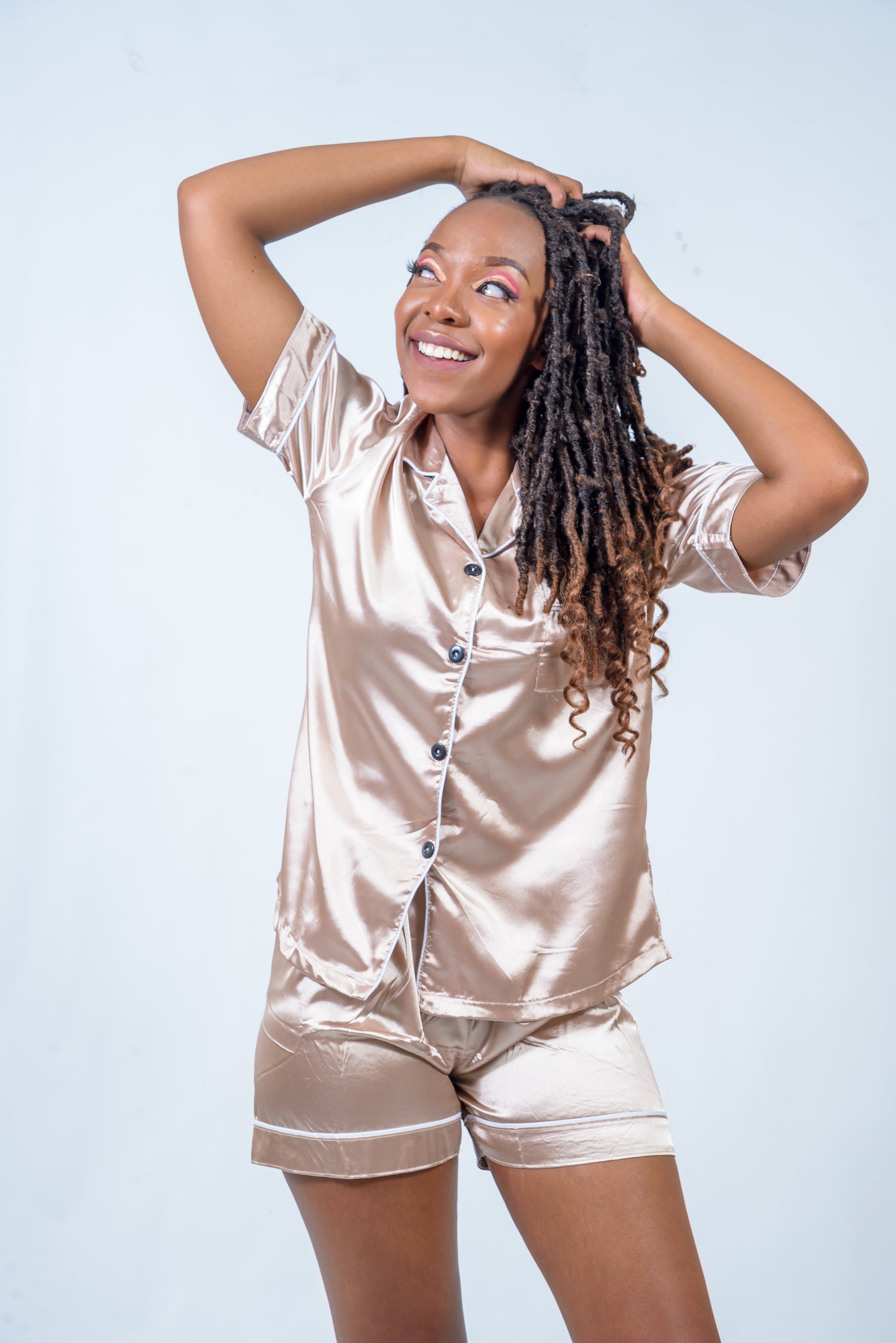 Satin Two-Piece pyjamas in assorted colours. An elegant way to dream, made from light fabrics to keep you cool in summer.